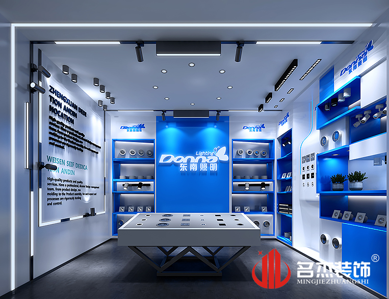 這次走進(jìn)的是一家集產(chǎn)品研發(fā)、生產(chǎn)、銷售于一體的商照燈飾綜合性品牌。設(shè)計(jì)團(tuán)隊(duì)根據(jù)客戶的需求,以及對該行業(yè)的了解,采用充滿科技風(fēng)格的設(shè)計(jì)理念,將一些新穎的設(shè)計(jì)元素加入到整體的設(shè)計(jì)當(dāng)中,通體使用企業(yè)logo色——藍(lán)色,也是科技感滿滿的一種顏色作為整體設(shè)計(jì)的主色調(diào)。